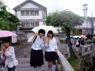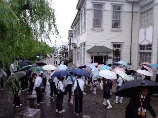 雨の中での散策の様子。確かに手にはお土産の袋が・・・。
