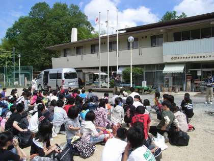 朝はJRの稲荷駅に集合です。そこから列車に乗って長池駅まで行き,10:00頃に友愛の丘に到着しました。現地で説明を聞いているところです。