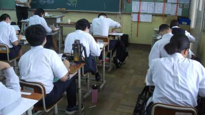朝練習や7時間目の深草Fesの取組の様子を頻繁にお伝えしていますが,1時間目から6時間目までは平常授業です。行事前は取組のことで頭がいっぱいになったりしてけじめがつかないこともあったりするのでは・・と思っていましたがそんな心配はまったく必要ありません。写真は今日の授業の様子ですがけじめをつけて集中して受けることができています。
