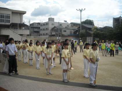 7月2日に,いじめ追放等を訴えてキャンペーンパレードを行いました。これは深草地域から青少年の健全育成を発信するもので,毎年深草地域生徒指導連絡協議会が主催して行われています。今年も深草中学校吹奏楽部が先導し,PTAや生徒会の本部役員,小学生や地域の方々が一緒にパレードを行い,メッセージカードの入ったティッシュやチラシを配りました。