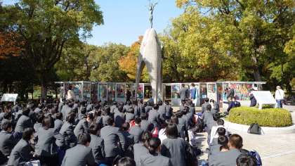 快晴の平和公園で平和祈念セレモニーを行っています。