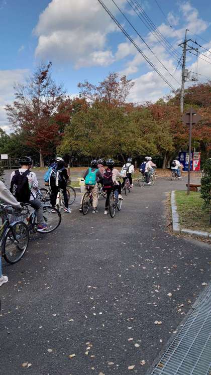 しまなみ街道サイクリングの様子です。落ち葉の様子を見ると肌寒そうですが,サイクリングにはもってこいの気候かもしれませんね。