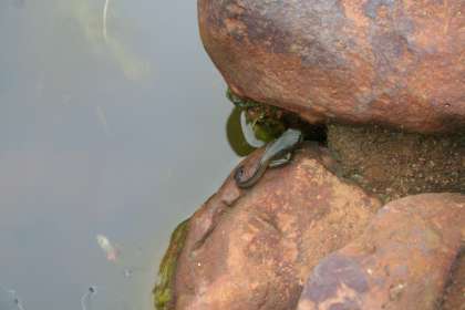 中庭の池に「モリアオガエル」のおたまじゃくしを放流しました。