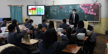 その後,学級担任,1年生担当の学年の教員の紹介をし,担任の先導で教室へと向かいました。