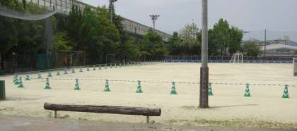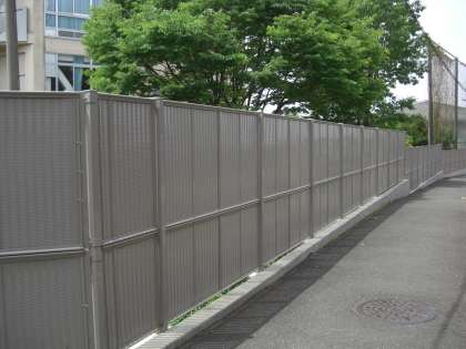 今回,写真中 校地北側の工事が終わり,これはできたばかりのフェンスです。