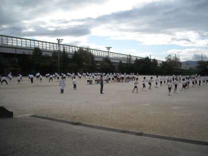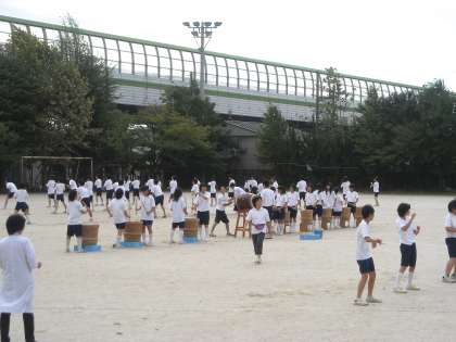 3年生の集団演技「ロック・ソーラン」。深草フェスティバルの最後を飾る伝統の演技です。毎年これを見に来るのが楽しみだという保護者が多いということです。今年も感動を与える演技を期待します。写真は練習風景です。