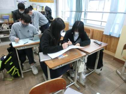 今日の5,6限に色画用紙に「座右の銘」「好きな言葉」「今意識していること」を書きメッセージポスターを作りました。そのポスターを持って写真を撮影しました。