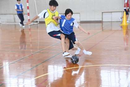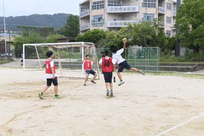 3年生は、今日の4限にスポーツ大会を実施しました。グランドでは、ハンドボールを行い、体育館ではバレーボールとフットサルが行われました。体育委員が中心となって準備を行い、実施されました。大いに盛り上がっていました。