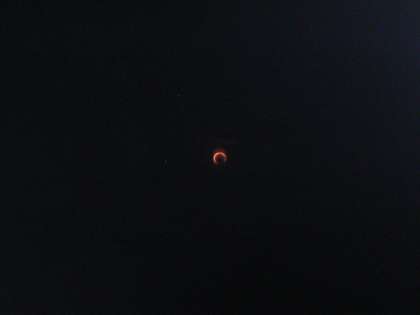 最大になった午前7時30分頃,辺りはいつもの明るさではない不思議な感じにおそわれました。また陰は輪郭がぼやけ,木漏れ日は欠けた太陽の形を模しており,どれもこれも初めての経験ばかり。生徒達だけでなく大人にとっても貴重な体験となりました。