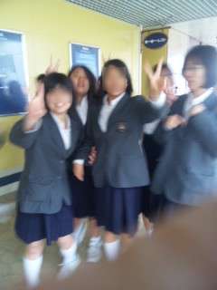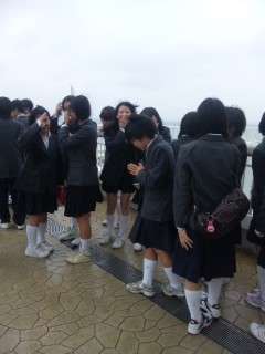 海ほたる到着。記念の学級写真をカメラに収めました。天候は小雨。やはり気温が低そうですが,生徒達は皆元気に旅を続けているようですね。