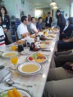 本部ペンションでの朝食風景です。メニューは生徒達も同じです。