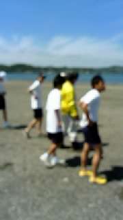 ビーチコーミング中です。写真の焦点が不安定な方には,実は背景に富士山が映っています。