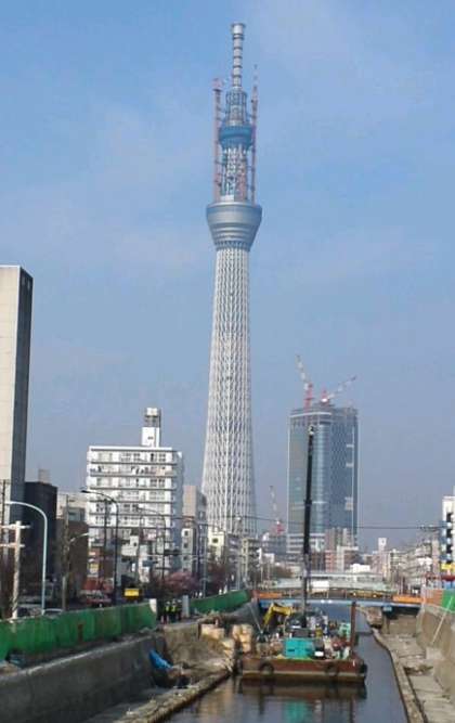(写真は本文に関係なく,左:’10.9.5浅草より 中:’11.2.5福神橋より 建設中のスカイツリー 右:’12.5.24 現在のスカイツリー)