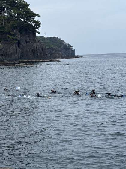 スノーケリングの様子です。海は少し冷たいかも、ですね。