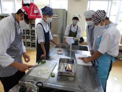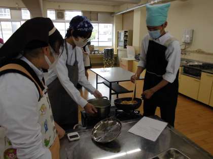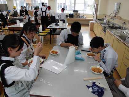 2年生は4クラスとも、調理実習を行い、ナポリタンを作りました。