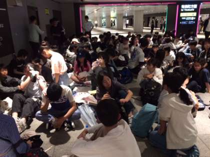 雨の中の東京班別研修を終え、東京駅に集合しました。
