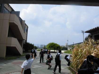 始まりました、2学期。暑さが厳しいので、オンラインで伝達表彰と始業式。そして、全学年、夏休み明けテスト。その後、学活で提出物を提出して、下校しました。