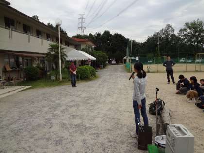 現地に着くと,先ず,これからお世話になる施設の方へあいさつを行いました。その後,早速準備にかかりました。男女で協力して頑張っています。