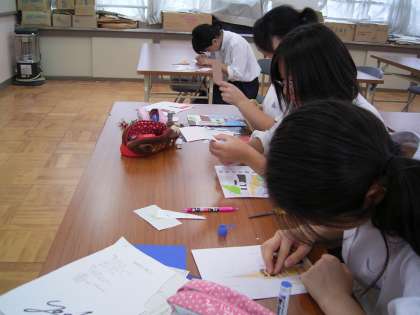 3年生の展示は昨年度に引き続き「貼り絵」です。今年のテーマは修学旅行。「自分たちで作り上げる修学旅行」をスローガンに,修学旅行に向けて2年生から事前学習に取り組み,目だけでなく胸や頭にしっかりと焼き付いている修学旅行の思い出を,きっとみごとに表現してくれることと思います。当日は沢山の人に見に来ていただきたいですね。