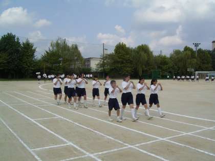 体育大会の学年練習は,各学年2回ずつ行いますが,その最後となった1年生の学年練習が今日の1・2時間目にありました。これまでどの学年も天候に恵まれ,予定通りに行われたのが何よりです。後は19日の「予行」を終えて27日が体育大会の本番です。
