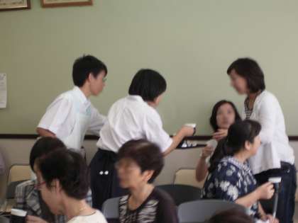 おもてなしタイムでは,本校の国際文化文芸部の部員達が,参加者にコーヒーを振る舞って接待してくれました。敬老の日を前に,お年寄り達にも喜んでいただけたことと思います。