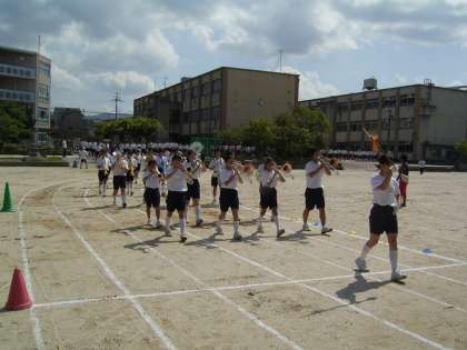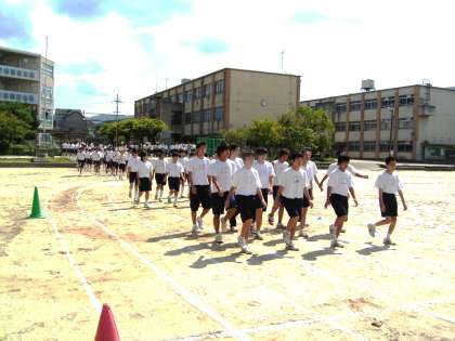 今日は2〜4限を使って体育大会の予行練習を行いました。本番に向けてプログラムに沿った通し稽古と言うところでしょうか。開閉会式や招集,入退場等の練習などを行いました。
