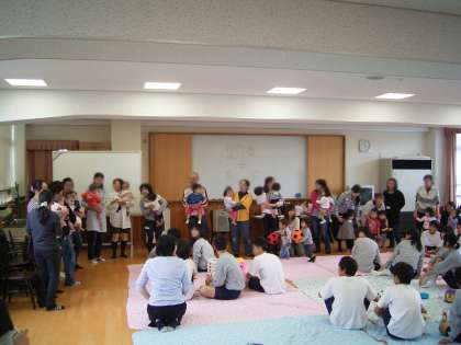 赤ちゃんの年齢順に整列していただき,お母さんやお父さん方から,どの年齢でどんな事ができるようになるかなどをお話していただきました。まるで人間の成長の過程を一目で見ているようで大変よく理解することができました。
