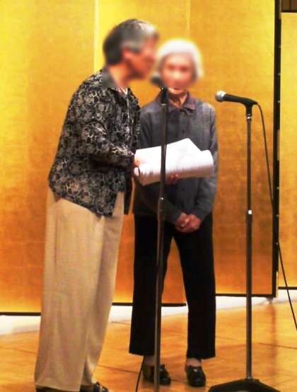 (二番目の写真は右の方が旧校歌を作曲された先生。三番目は旧校歌を斉唱されている様子)