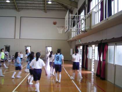 上から2年生のサッカーの様子・2年生バスケットボールの様子・1年生サッカーの様子