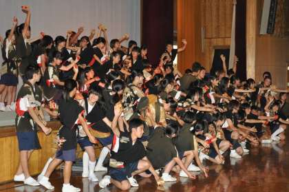 大学生の講師の方にも教わりながら仕上げてきました。華やかで元気いっぱいの舞でした。体育大会でも披露されますのでお楽しみに。