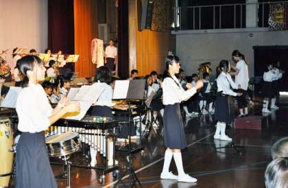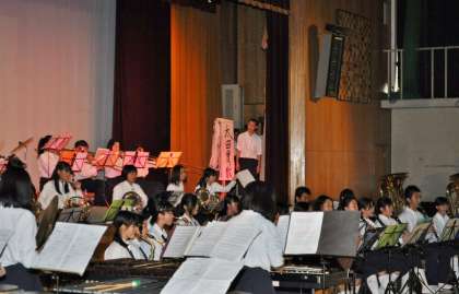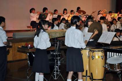吹奏楽部の演奏。1・2・3年生の部員全員で、「宝島」「CMメドレー」「リトル・マーメイド・メドレー」、そしてアンコールに応えて1・2年生部員の合唱を交えた「遙か」を演奏しました。明日の体育大会での行進演奏が残されていますが、3年生にとってはステージでの最後の演奏となりました。夏から2か月でさらにレベルアップしています。難しいソロも、難しさを感じさせない流暢な演奏になっていましたね。