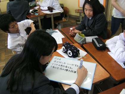 それから、それぞれの生活班で、分担して各委員会の議案に対してや、関連する意見や質問を出し、小さなホワイトボードに箇条書きでまとめました。