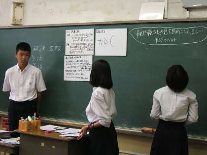 最後に黒板に貼って、出た意見をクラス内で知らせ合い、生徒総会に出す意見を吟味しました。説明、進行、記録などを含め、この時間は生徒が主体となって行うことができました。