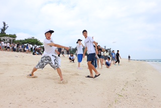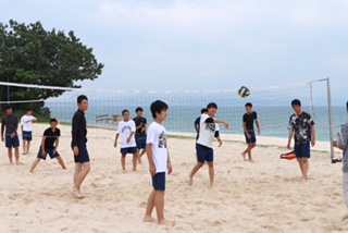 予定どおり海に入れました。「晴れ」といっていい天気です。「日差しは夏ですが日陰では風が爽やか。絶好のビーチ体験となりました。」という現地レポートです。