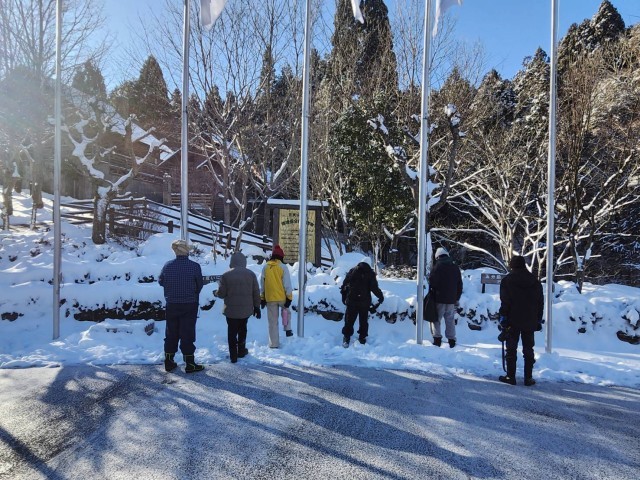 天気に恵まれ、すがすがしい朝を迎えました。今日も深草では体験できない雪の中での学習スタートです。