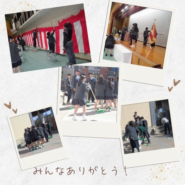 午後から1~2年生委員会生徒たちの協力により、式場の準備を完了しました。