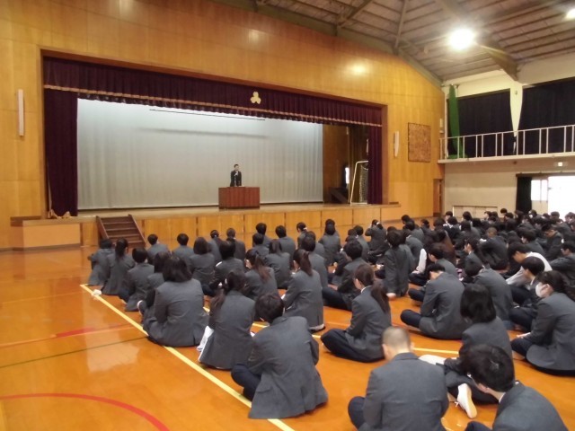 その後、修了式の中で、学校長のお話があり、令和7年度を振り返りつつ、お話をいただきました。また、春休みの生活や学習について、それぞれ担当の先生にお話をいただき、最後に生徒会本部から話がありました。