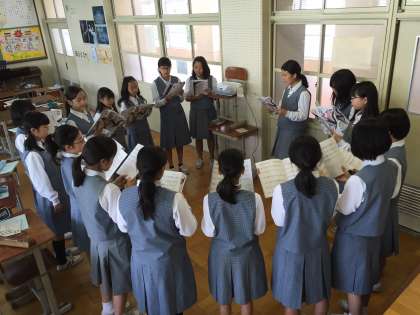 沖縄の修学旅行にちなんで、壮大な合唱曲『ひめゆりの塔』です。