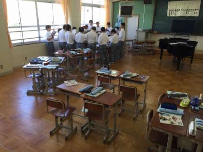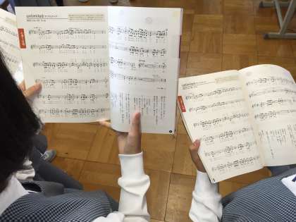 写真は1年生の、初めての学年合唱に向けての初パート練習の様子です。