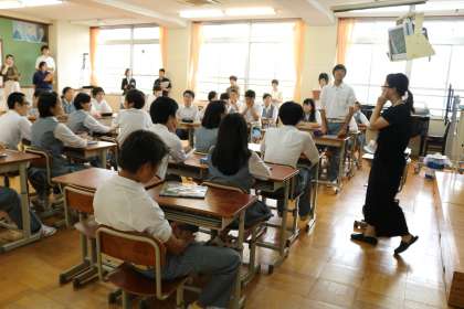 道徳の研究授業が行われ、3年6組の授業を先生方みんなで見て、勉強しました。