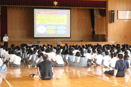 今日は、1年生と2年生の非行防止教室です。