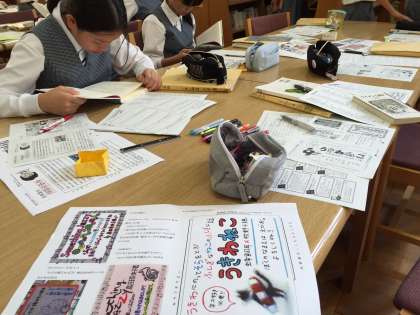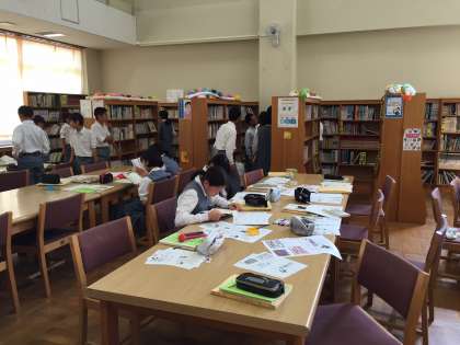 1年生の国語の授業が図書室で行われていました。