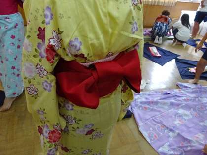 女子は男子より帯の結びが大変です。