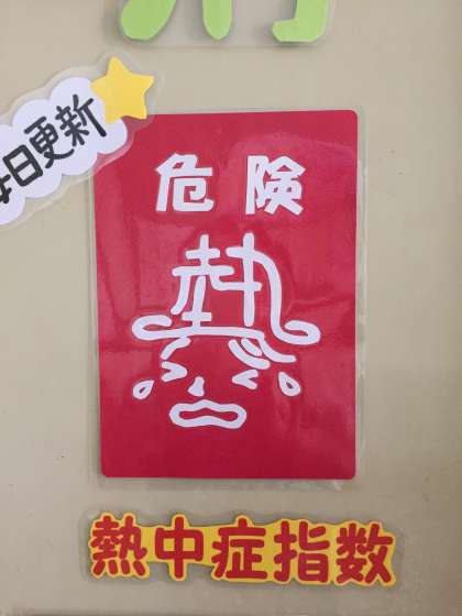 保健室前に、熱中症指数の掲示が保健室前に貼られています。