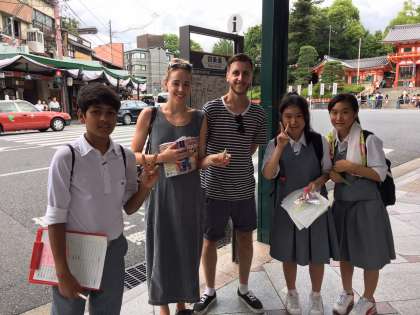 7月21日、英語部は八坂神社と花見小路で外国人観光客にインタビューをしました。