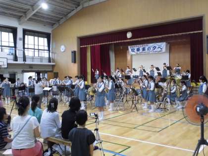 昨日8日は大雨警報発令により,急遽中止となりましたが,8月9日(水)18時から藤城小学校体育館にて,「第39回 吹奏楽の夕べ」(主催:藤森中学校下地域生徒指導連絡協議会)を開催することができました。大変蒸し暑い中でしたが,多数の保護者・地域の皆様にご来場していただきました。誠にありがとうございました。