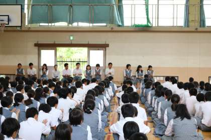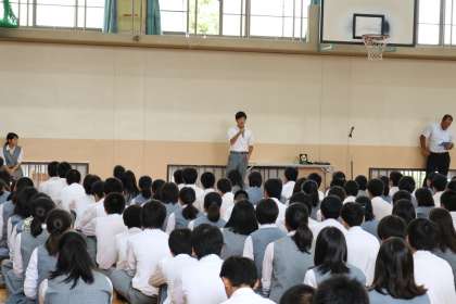 再開日全校集会・・・生徒会主導