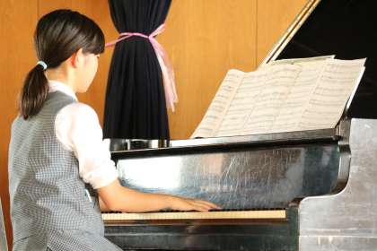 体育館の中で、ソプラノ・アルト・男声・ピアノ