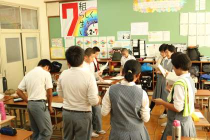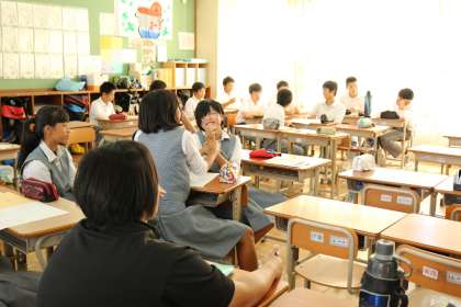 他の2年生の教室をのぞいてみると、舞台の取り組みの模様です。
