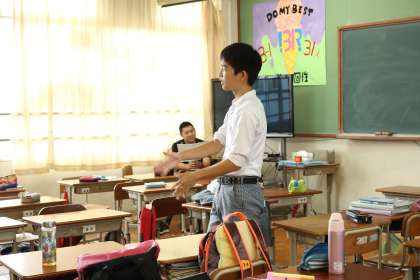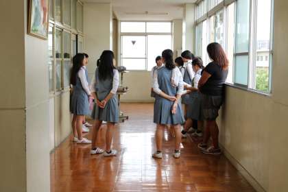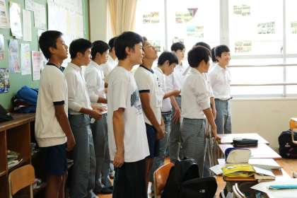 このクラスは『君とみた海』を男子は教室内で、女子は廊下で練習していました。